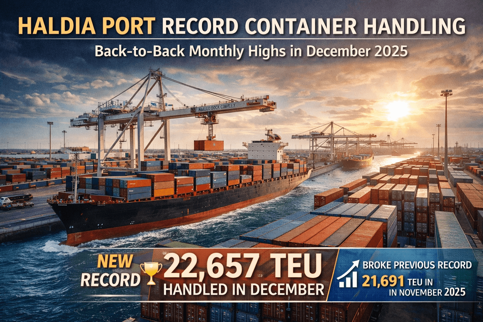 Haldia Dock Complex continues to rewrite its own benchmarks in container handling. After achieving an all-time monthly high of 21,691 TEUs in November 2025, HDC has gone a step further by scaling a new peak of 22,657 TEUs in December 2025. Back-to-back record months are no longer an exception at HDC—they are fast becoming the new normal.