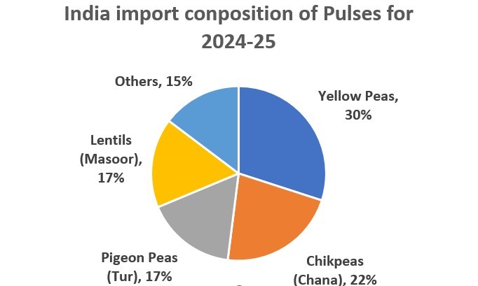 Yellow peas dominate import share, followed by chana, tur, masoor and urad.
