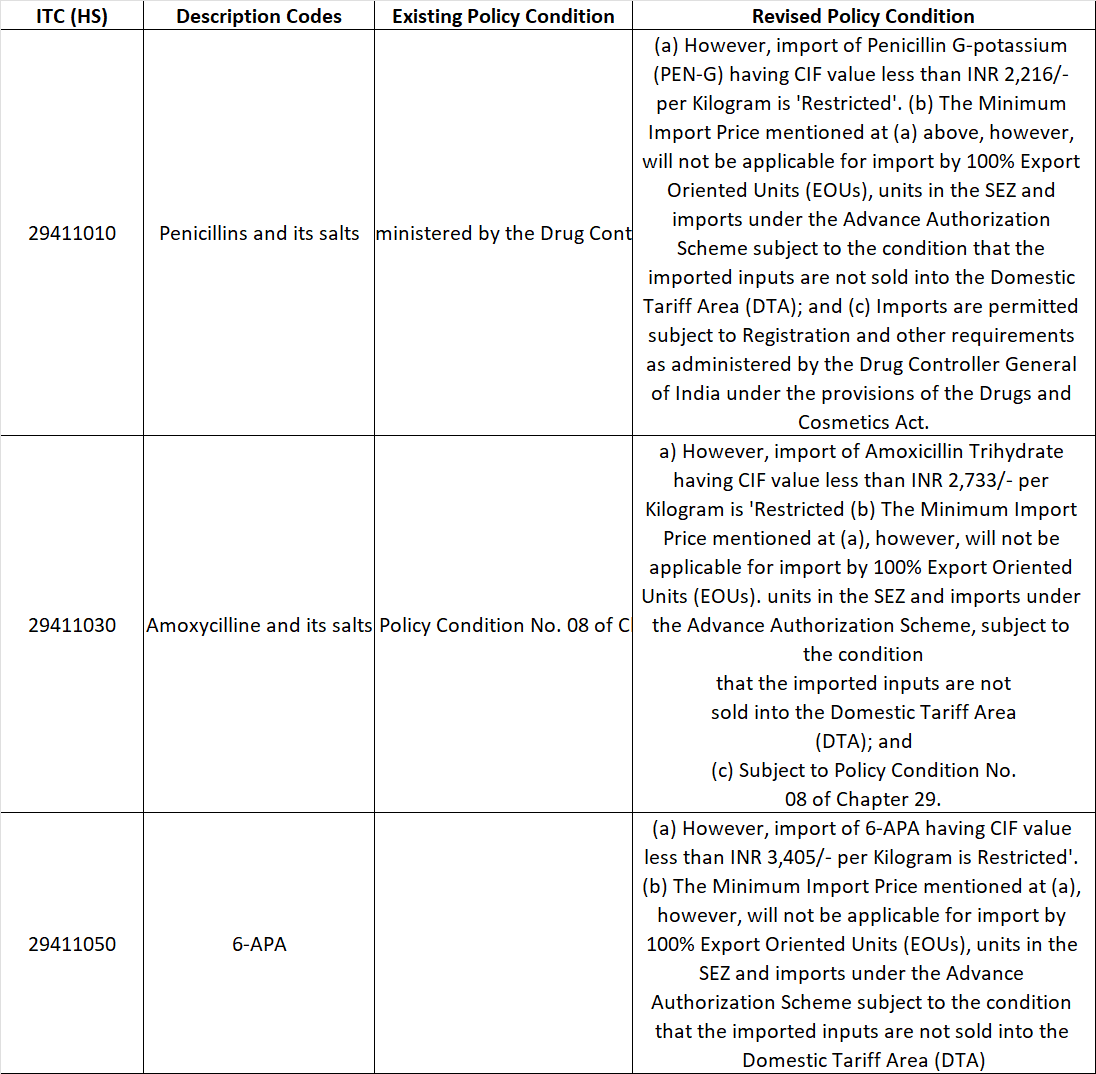 The Directorate General of Foreign Trade (DGFT) has issued Notification No. 56/2025-26, amending the import policy and policy conditions for certain Penicillin-based pharmaceutical inputs under Chapter 29 of ITC (HS) 2022, Schedule-I (Import Policy).
