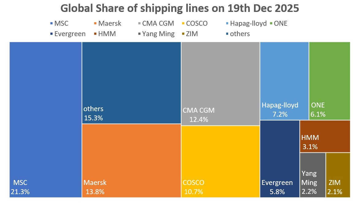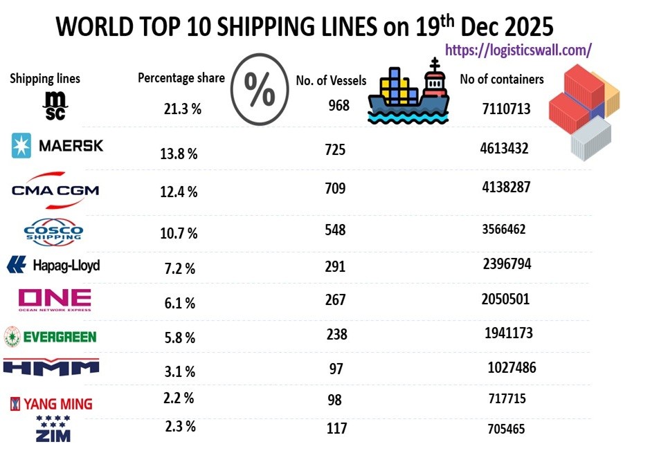 Attached is the image depicting top 10 shipping lines as on 19th Dec 2025