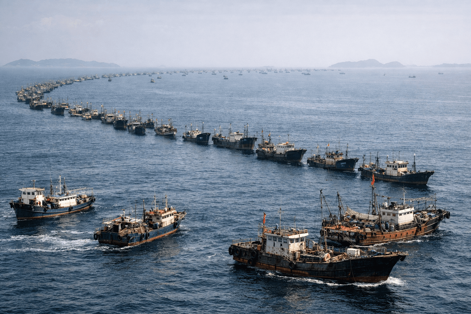 Strategists call this “grey-zone tactics.” It’s not open conflict, and it’s not routine fishing either. By turning a fleet of civilian-looking boats into a de facto maritime wall, one power managed to assert physical influence without triggering a headline-grabbing crisis.
