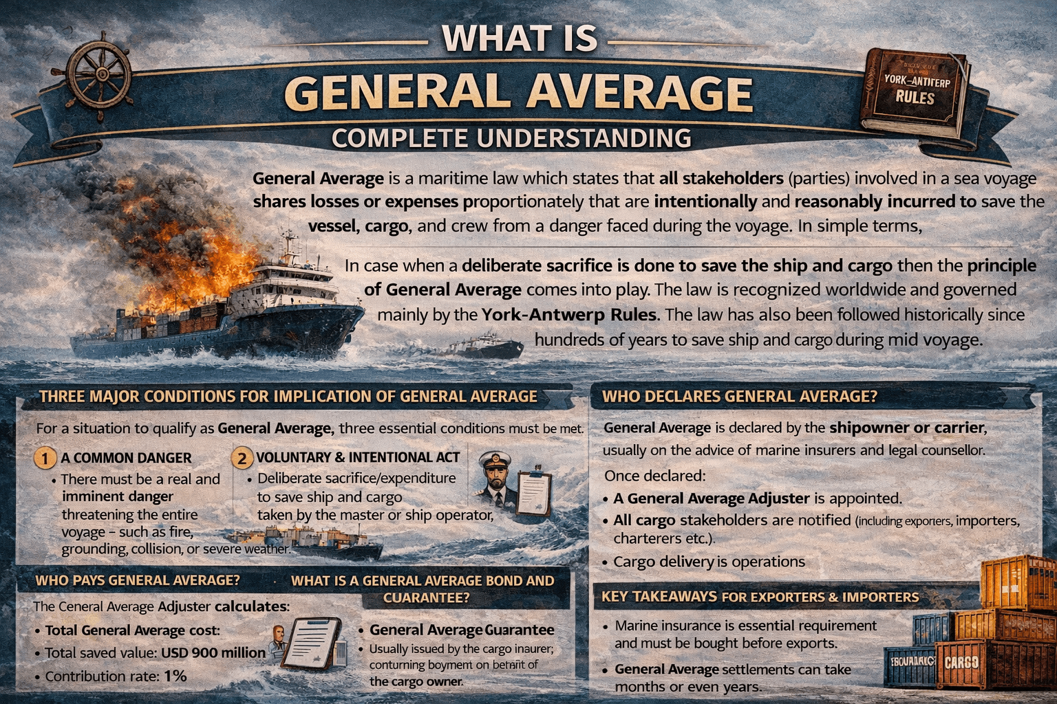 General Average is a maritime law which states that all stakeholders (parties) involved in a sea voyage shares losses or expenses proportionately that are intentionally and reasonably incurred to save the vessel, cargo, and crew from a danger faced during the voyage.